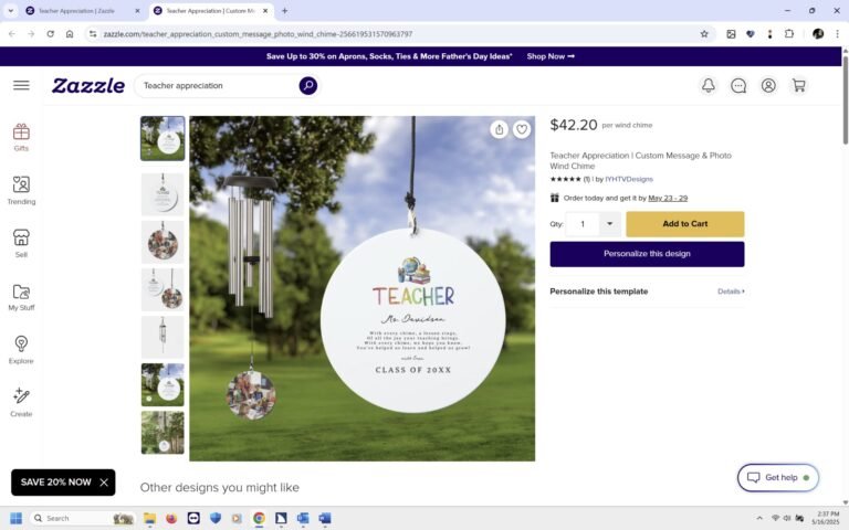 Show your gratitude with a personalized teacher appreciation gift - Custom Message & Photo Wind Chime from The Shopping Plaza. The perfect way to thank an amazing teacher! | $42.20 | ||||