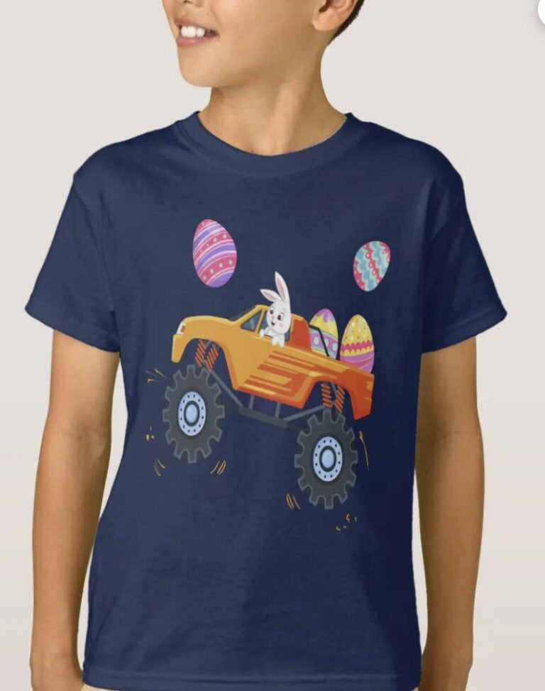 Shop personalized Easter apparel for boys at The Shopping Plaza. Get the cutest Easter Bunny Riding Monster Truck t-shirt for your kids today! | $17.99 | ||||