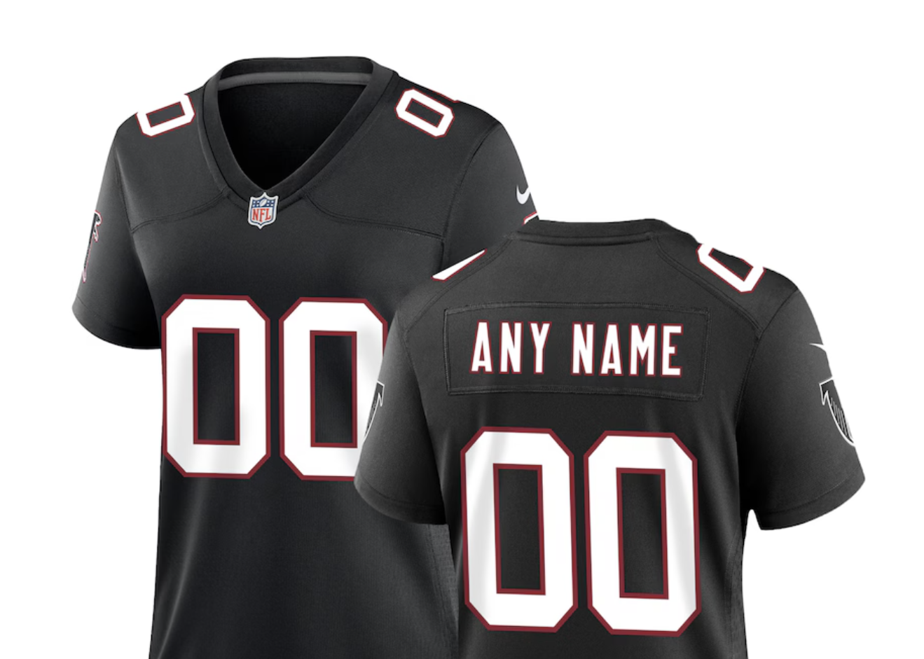 Elevate your game day style with The Shopping Plaza’s Atlanta Falcons Nike Women’s Throwback Custom Game Jersey in sleek black. Get your custom NFL product today!