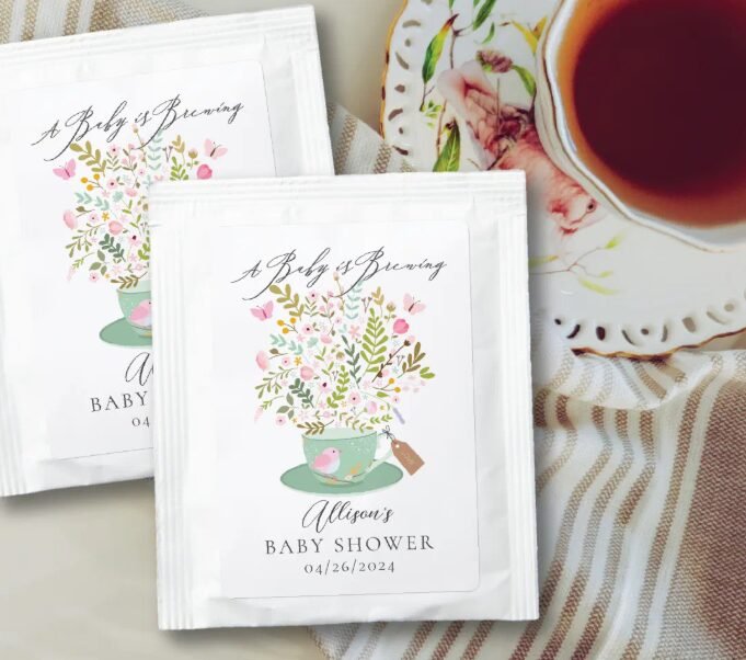 Looking for personalized Baby Shower favors? Check out The Shopping Plaza’s Baby Is Brewing Tea Bag Drink Mix for a unique and thoughtful touch to your celebration!