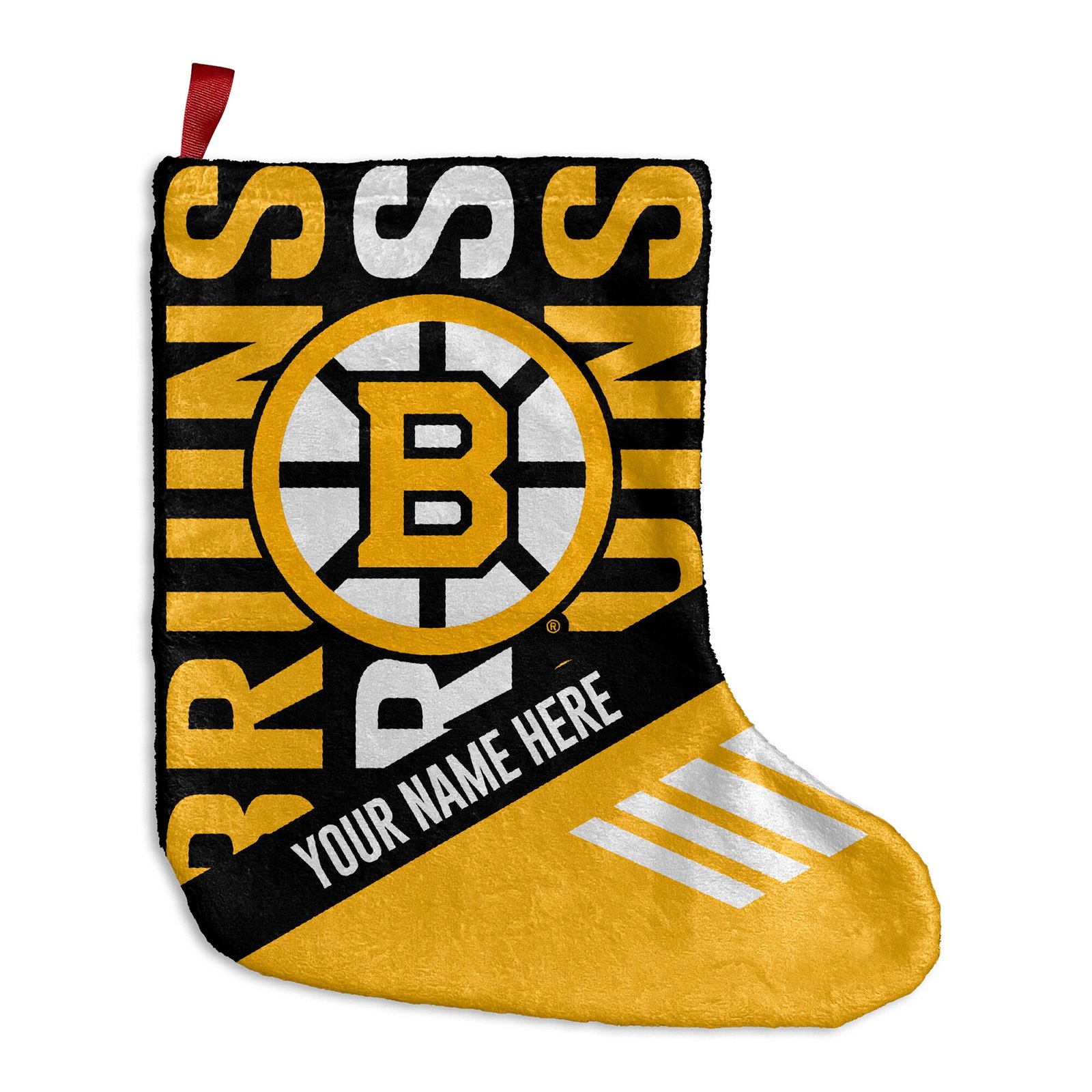 Imagine the excitement on Christmas morning finding gifts from Santa in this unique, personalized Bruins stocking. It's ideal for kids and adults alike, bringing vibrant team spirit to your holiday decor year after year. A fantastic, memorable gift for any Bruins enthusiast.