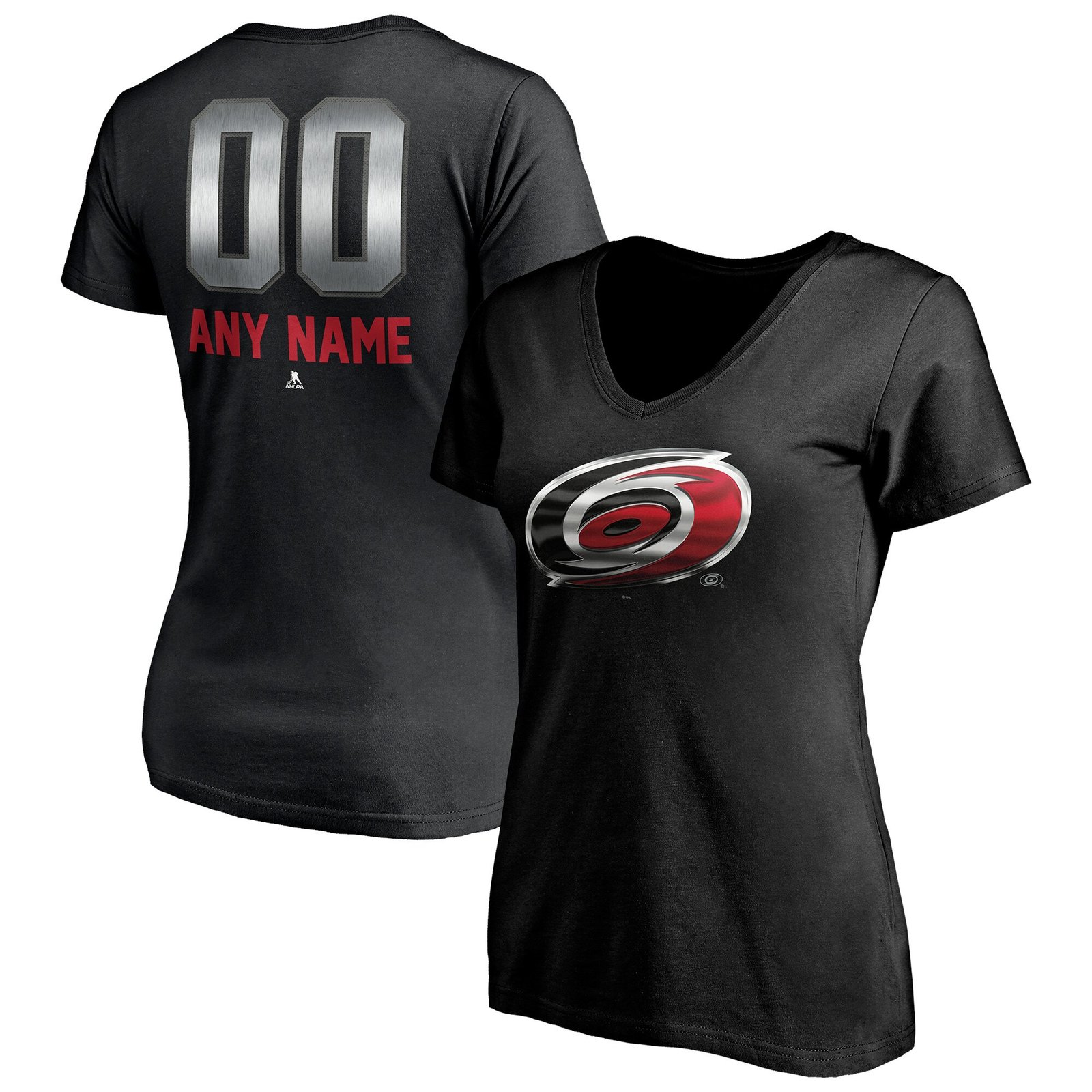 Show off your Carolina Hurricanes pride in style with this Women’s Personalized Midnight Mascot Logo V-Neck T-Shirt! Made of soft, breathable fabric, this personalized NHL apparel is perfect for game days or just lounging around. The black color makes it versatile enough to pair with any outfit.