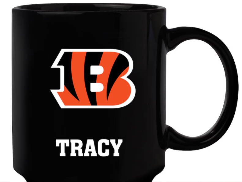 Make every morning a touchdown with our Cincinnati Bengals 11oz. Personalized Mug in classic black. Whether you’re a coffee connoisseur or tea enthusiast, this customizable NFL coffee mug is the ultimate game day accessory.