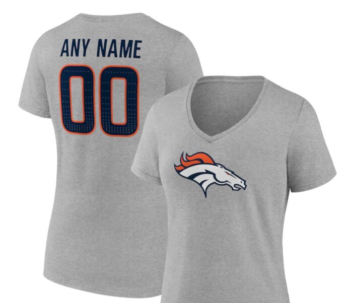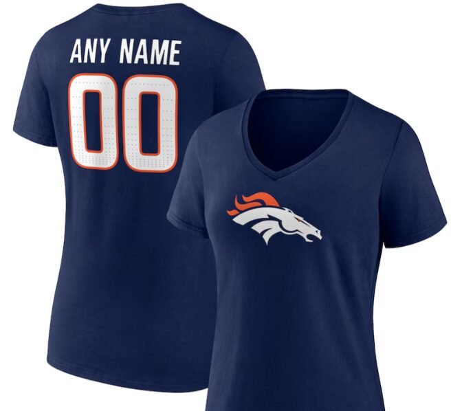 Calling all stylish Broncos fans! Elevate your game day look with this Denver Broncos Women’s Team Authentic Custom V-Neck T-Shirt in Navy. Made for comfort and designed for fashion-forward fans like you, this personalized NFL apparel is a must-have for every die-hard Broncos supporter.