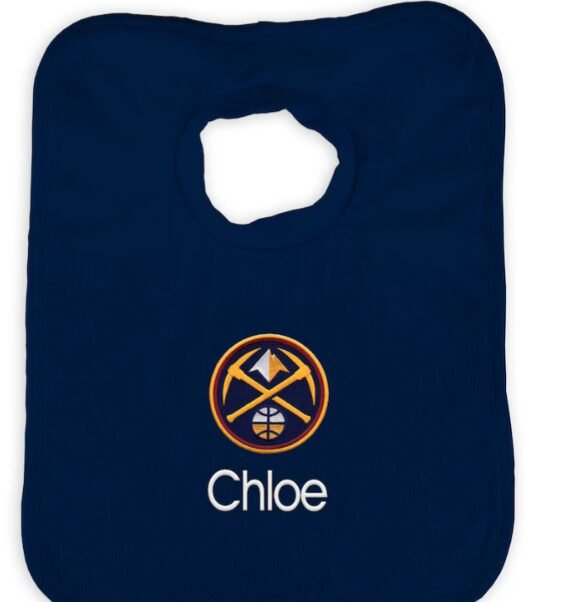 Score a slam dunk in cuteness with our Denver Nuggets Infant Personalized Bib – Navy. Whether your little one is dribbling or drooling, this personalized NBA baby accessory has got you covered!