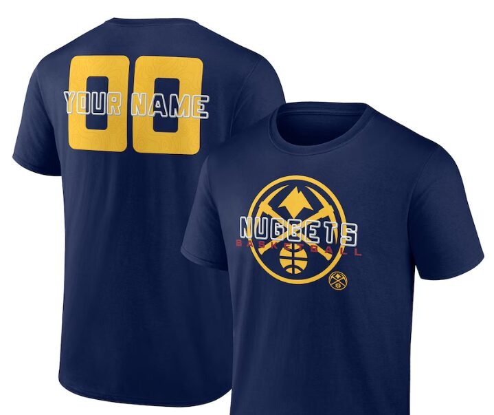 Show off your Denver Nuggets pride in style with our Stellar Personalized Name & Number T-Shirt in navy! This personalized NBA apparel is perfect for die-hard fans who want to stand out from the crowd.