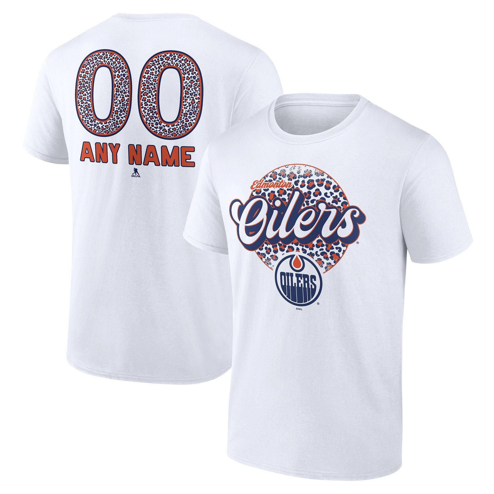 Shop the latest personalized NHL apparel with the Edmonton Oilers Unisex Name & Number Leopard Print T-Shirt. Show off your team spirit in style! Only at The Shopping Plaza. #NHL #EdmontonOilers #PersonalizedShirt #LeopardPrint #SportsFashion. Grab yours now!