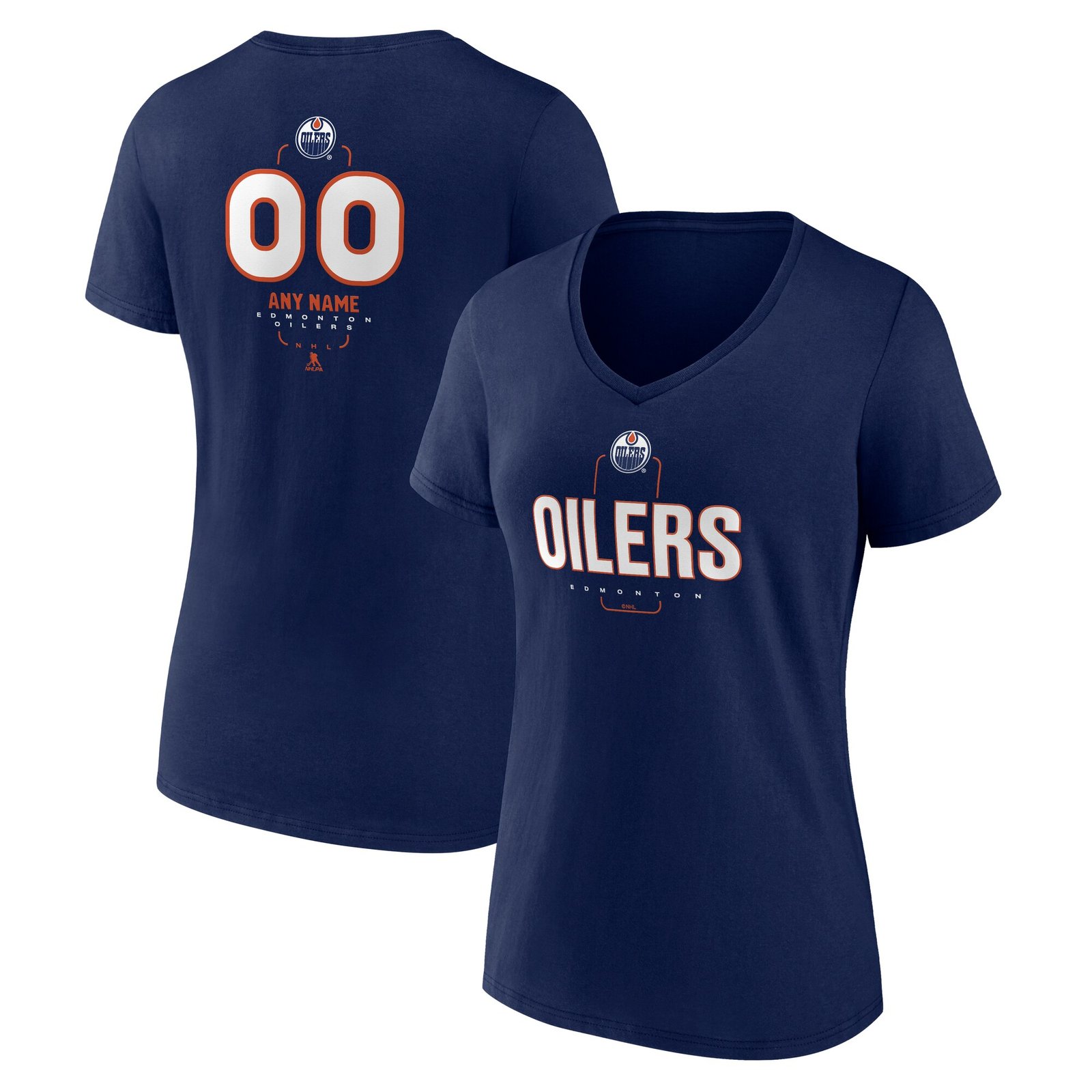 Discover the perfect fit with personalized NHL apparel for Edmonton Oilers fans! Make a statement with our Women’s Personalized Name & Number Midfielder V-Neck T-Shirt in Navy. Shop now at The Shopping Plaza! #NHLapparel #EdmontonOilers #FanGear #PersonalizedTShirt #HockeyFashion #ShopNow
