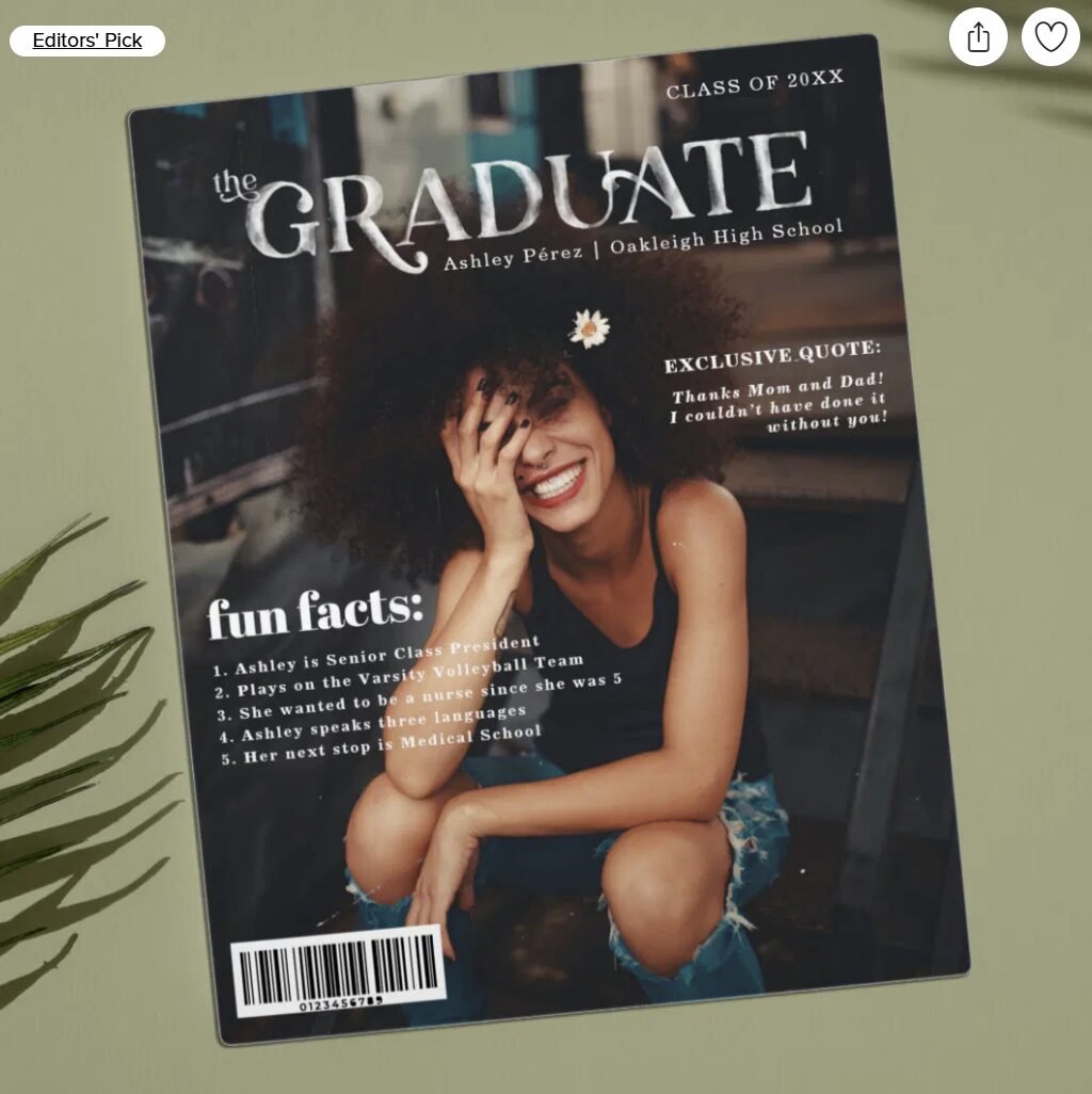 Discover the perfect personalized graduation accessory with The Shopping Plaza’s fun facts magazine cover photo plaque. Make your grad’s achievement truly special!