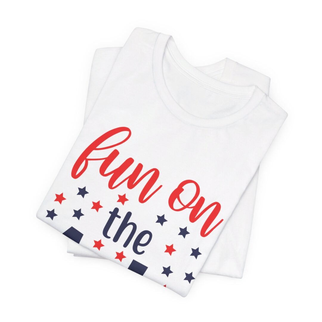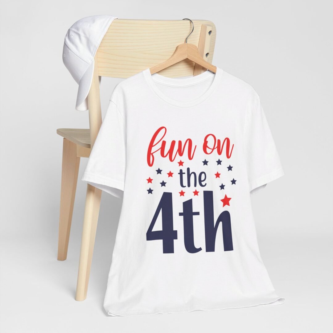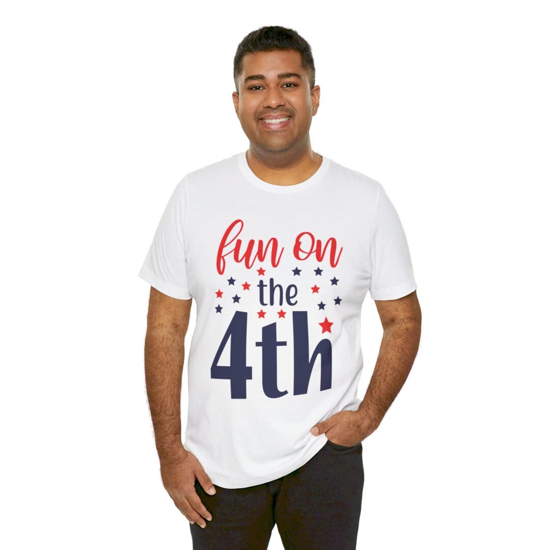 Get ready to celebrate in style with our Fun on the Fourth Tee! This personalized Fourth of July apparel will make you the life of the party, with its bold design and comfortable fit. Show off your patriotic spirit with this festive tee that’s perfect for BBQs, fireworks, and all your favorite Independence Day activities.