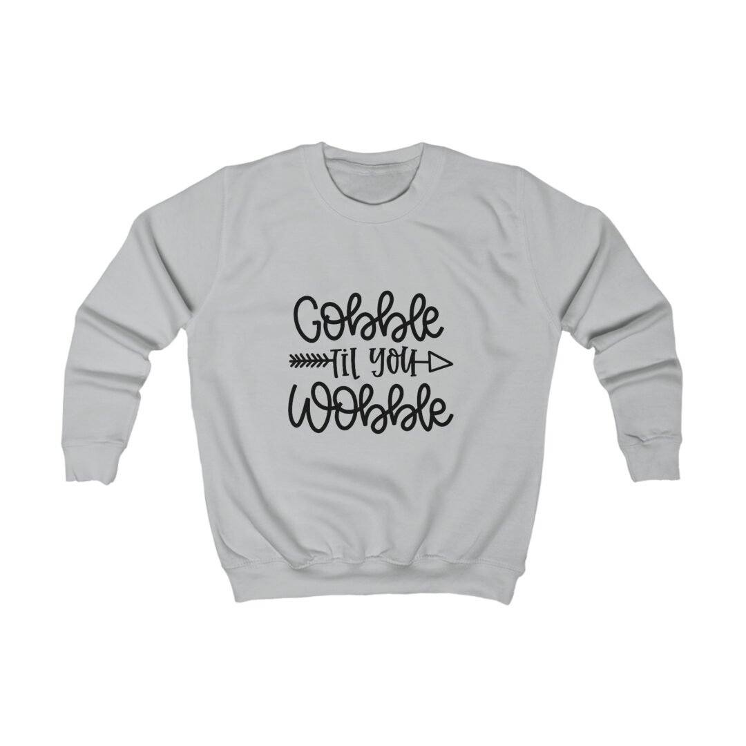 Elevate your little gobblers’ style game with our Gobble Til You Hobble Kids Sweatshirt! This personalized apparel is the perfect way to add some personality to your kiddo’s Thanksgiving outfit. Get ready to gobble ’til you wobble in style!