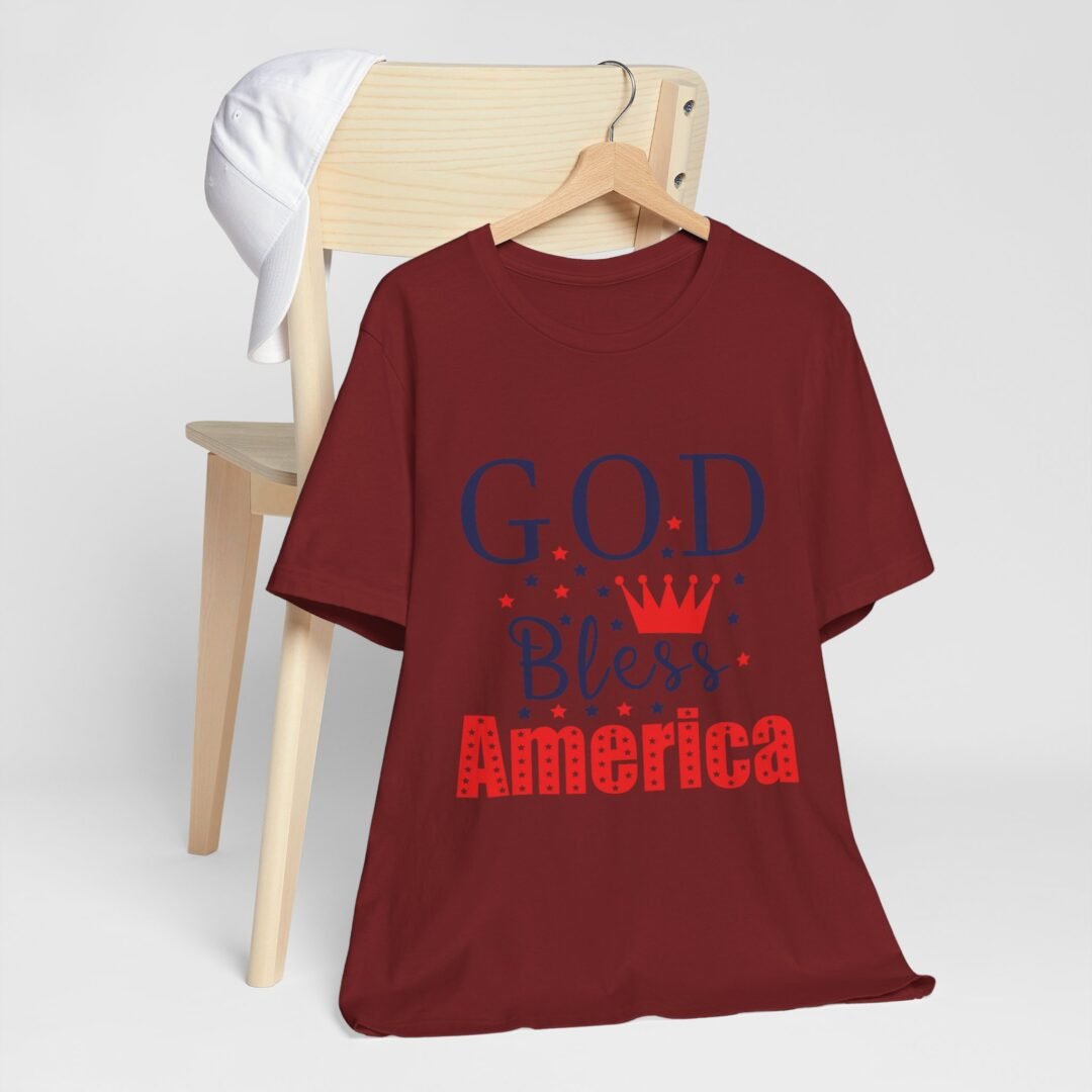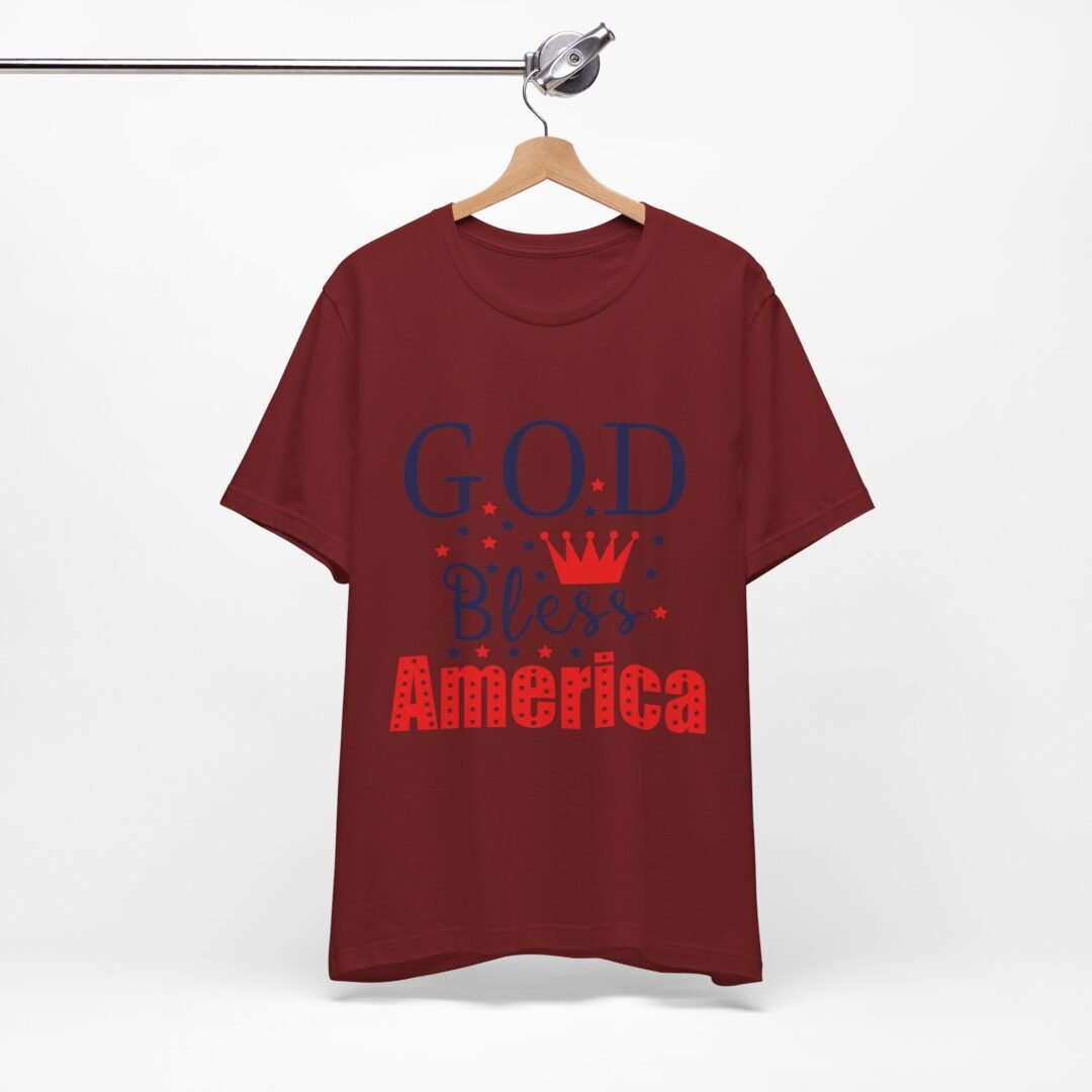 Show off your patriotic spirit with this God Bless America Tee! Perfect for celebrating the Fourth of July in style, this personalized apparel will have you looking like a true American hero. Whether you’re watching fireworks or grilling up some burgers, this tee is a must-have for any festive occasion.