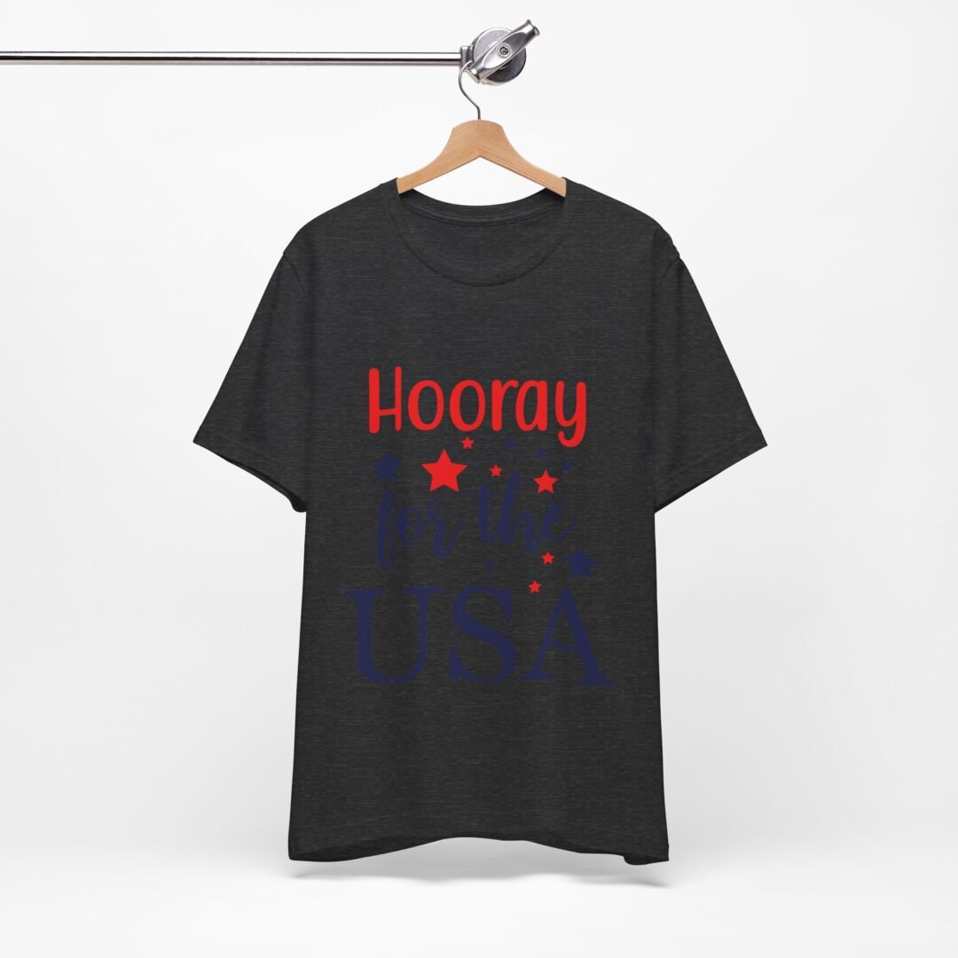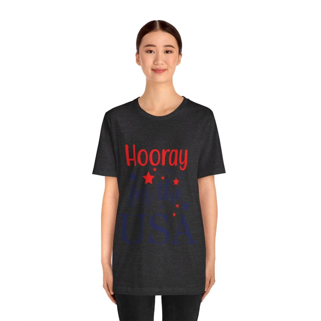 Celebrate America’s birthday in style with our Hooray for the USA Fourth of July Tee! This personalized Fourth of July apparel is the perfect way to show off your patriotic spirit. Made with high-quality materials, this tee is as comfortable as it is stylish. Whether you’re watching fireworks or having a backyard BBQ, this tee is sure to be a hit!