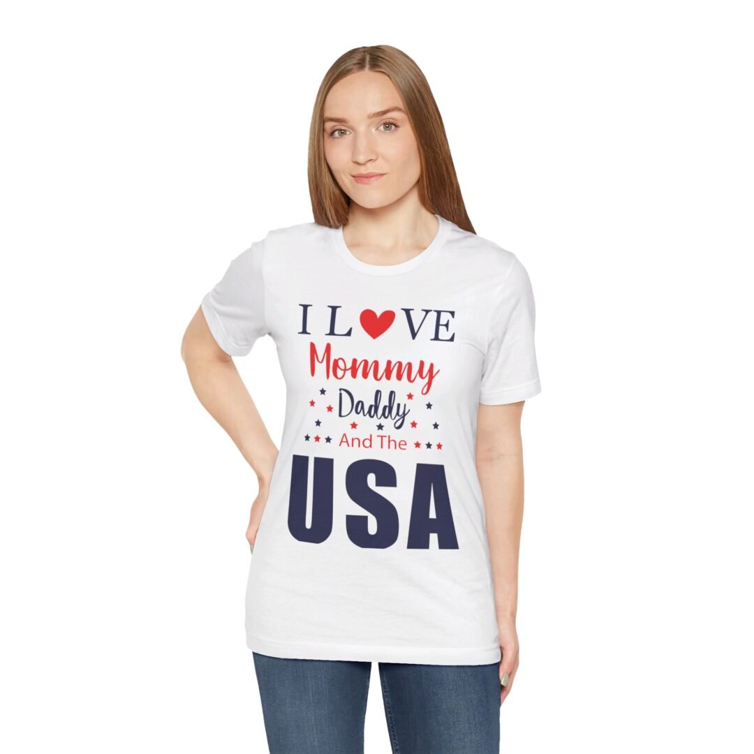 Don’t just wear your heart on your sleeve, wear your love for the USA on your chest with our I Love the USA Tee! This Fourth of July, make a statement with this personalized apparel that screams patriotism and style. Get yours today and get ready to turn heads at every cookout and parade.