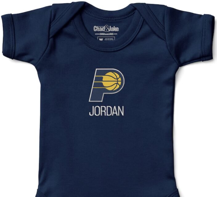 This Indiana Pacers Infant Personalized Bodysuit in Navy is the perfect addition to your little one’s wardrobe. Made with lightweight material, this NBA baby apparel is not only comfortable but also stylish. Personalize it with your baby’s name and watch them rock it like a true Pacers fan!
