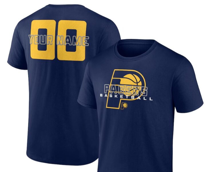 Elevate your game day look with the Indiana Pacers Stellar Personalized Name & Number T-Shirt in Navy. This personalized NBA apparel is a slam dunk choice for any die-hard Pacers fan looking to stand out from the crowd. Show off your team pride in style!