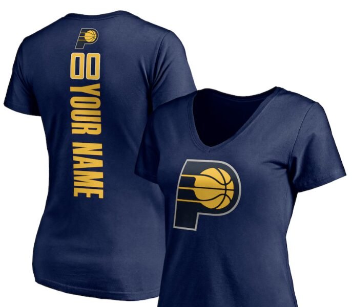 Calling all Pacers fanatics! Gear up in style with our Indiana Pacers Women’s Playmaker Personalized Name & Number V-Neck T-Shirt in Navy. This personalized NBA apparel is perfect for standing out in the crowd while representing your favorite team.