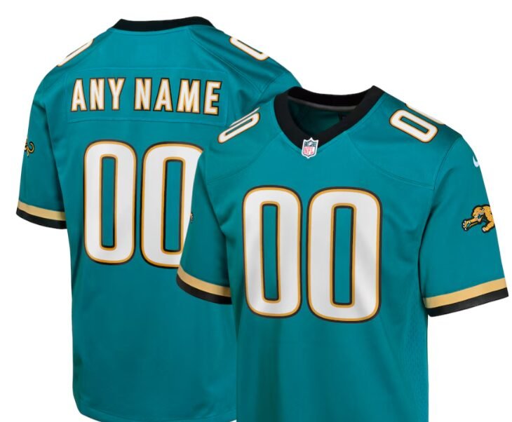 Get your little fan geared up in style with the Jacksonville Jaguars Nike Youth Prowler Throwback Custom Game Jersey in Teal. This personalized NFL children’s apparel is the perfect way for your mini-me to show off their team pride while looking cool on game day.