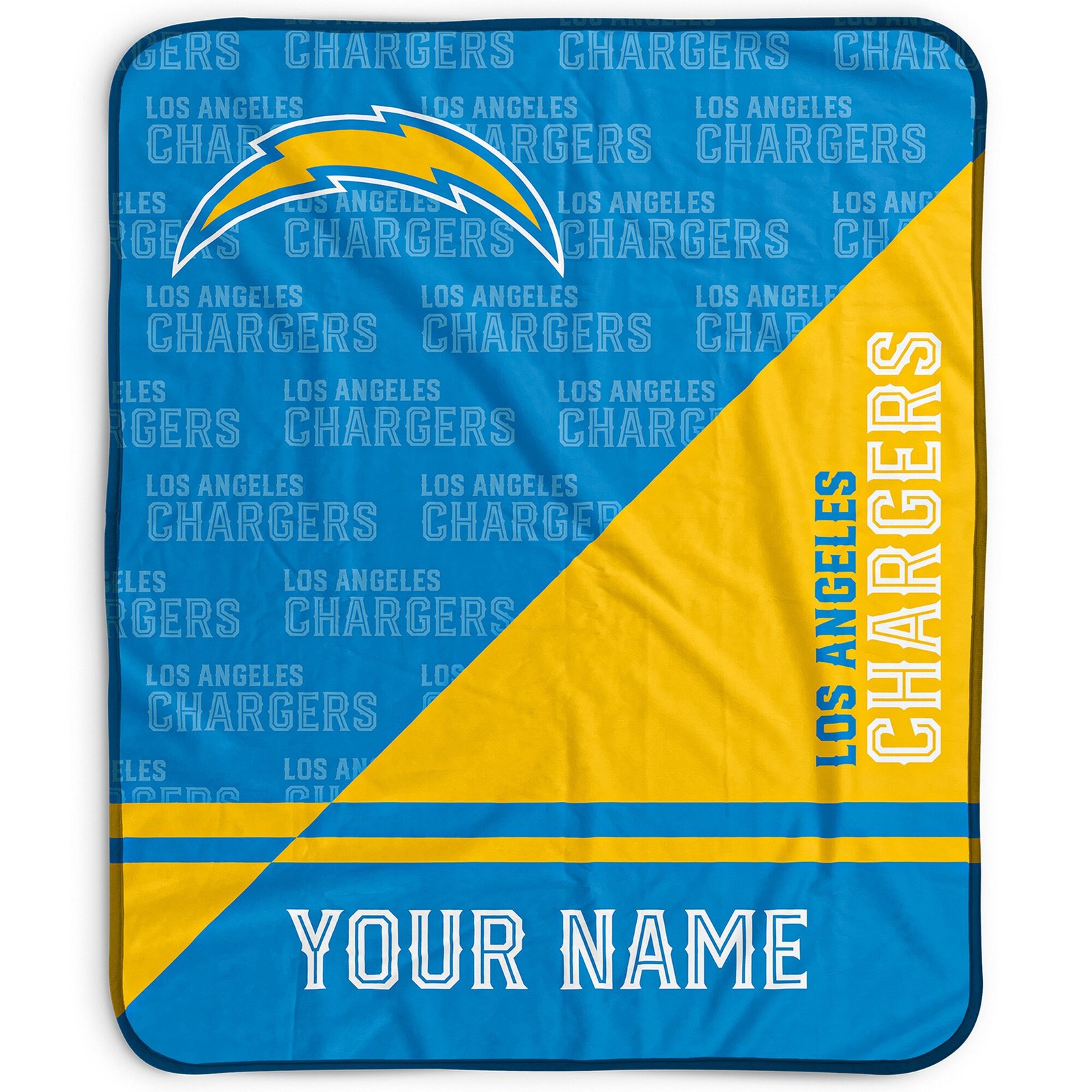 Make your home a touchdown with the Los Angeles Chargers Pegasus 50″ x 60″ Split Wordmark Personalized Fleece Blanket! This lightweight and cozy blanket is the perfect addition to any Chargers fan’s collection of NFL home decor. Personalize it with your name and show off your team pride in a unique and stylish way.