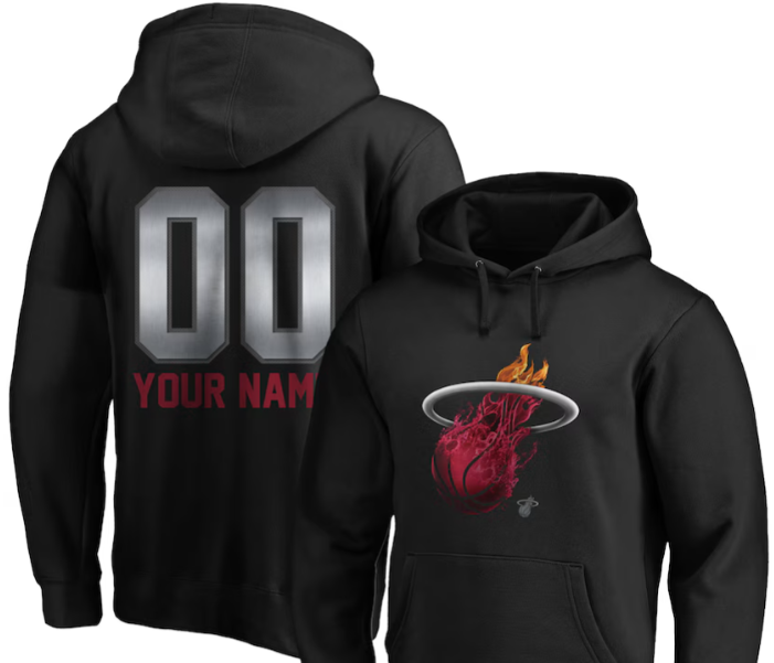 Elevate your game day look with our Miami Heat Midnight Mascot Personalized Name & Number Pullover Hoodie. This trendy black hoodie is the perfect way to support your favorite NBA team in style. With your own name and number on the back, you’ll be the envy of every fan in the stands.