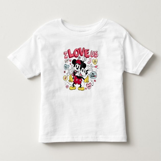 Introduce your little one to the enchanting world of Disney with the Mickey Mouse & Minnie Mouse | I Love Us Toddler T-shirt. This charming garment combines beloved characters with exceptional comfort and quality, making it an essential and delightful addition to any toddler’s wardrobe.
