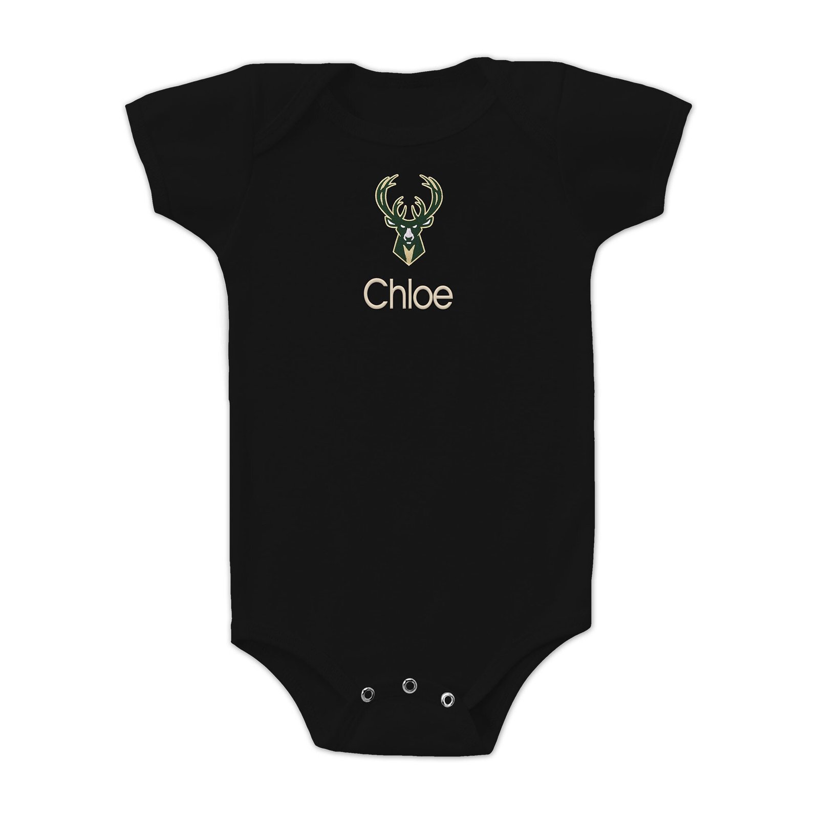 Your mini Milwaukee Bucks fan will be the star of game day in this personalized infant bodysuit. Made for comfort and style, this NBA baby apparel in classic black is the perfect outfit for your little one to support their favorite team. Get ready for some serious baby baller vibes!