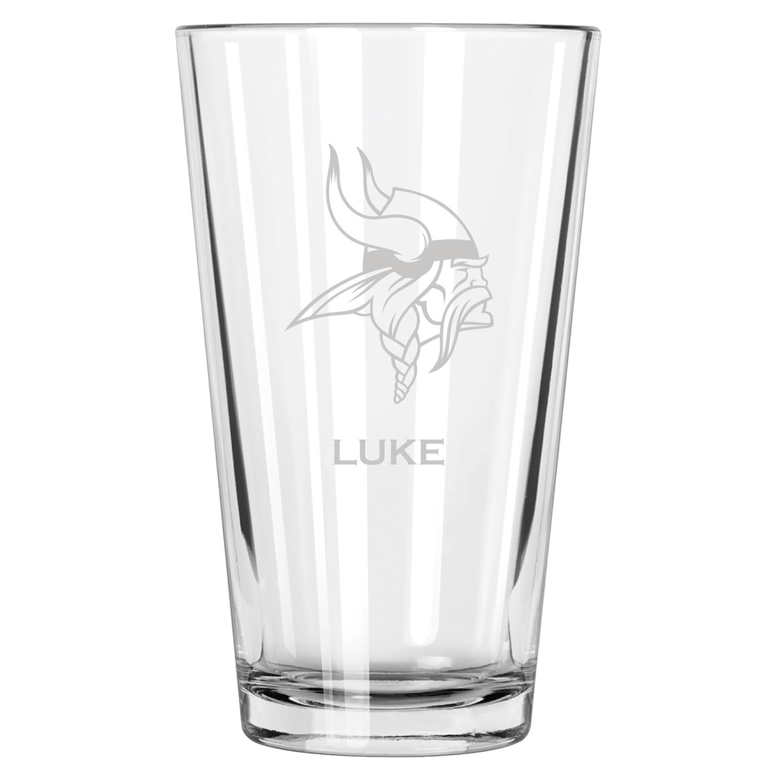 Elevate your beer-drinking experience with this Minnesota Vikings 16oz. Personalized Etched Pint Glass! Show off your team pride while sipping in style. Perfect for die-hard Vikings fans who appreciate personalized NFL glassware.