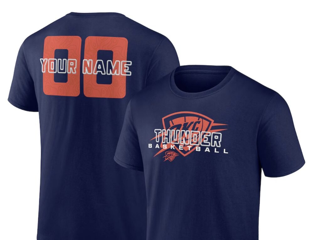 Looking for the perfect personalized NBA apparel to rock at the next Thunder game? Look no further! This Oklahoma City Thunder Stellar Personalized Name & Number T-Shirt in Navy is just what you need. Whether you’re cheering from the stands or watching from home, this tee is sure to make a statement.