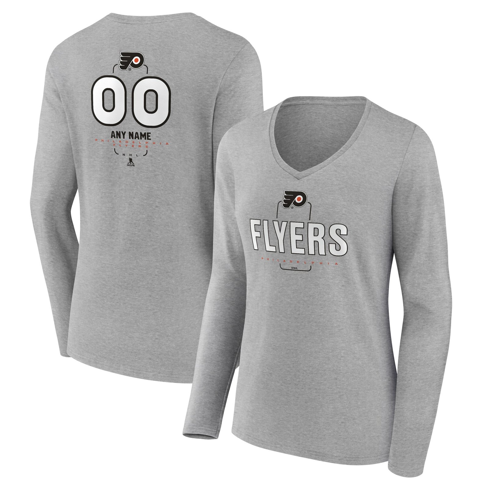 Stand out from the crowd in style with our Philadelphia Flyers Women’s Personalized Name & Number Midfielder Long Sleeve V-Neck T-Shirt in sleek black. Show off your love for the Flyers with this unique piece of personalized NHL apparel that lets you rock your favorite player’s number and your own name.