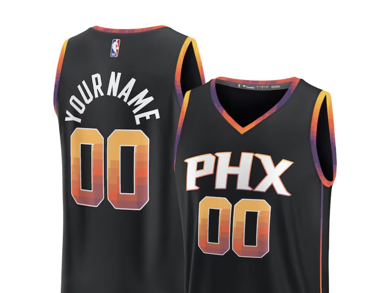 Score big with a personalized NBA apparel fan jersey from The Shopping Plaza! Get your hands on the Phoenix Suns Fast Break Custom Replica Jersey in black – Statement Edition today.