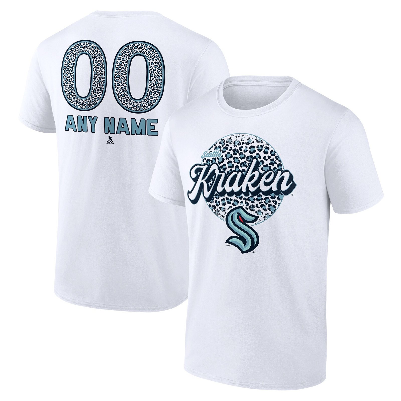 Are you tired of blending in with the crowd? Stand out in style with our Seattle Kraken Unisex Personalized Name & Number Leopard Print T-Shirt in white. Made for all you trendsetters out there, this NHL apparel is perfect for showing off your unique style while supporting your favorite team. Get ready to turn heads and roar with pride!