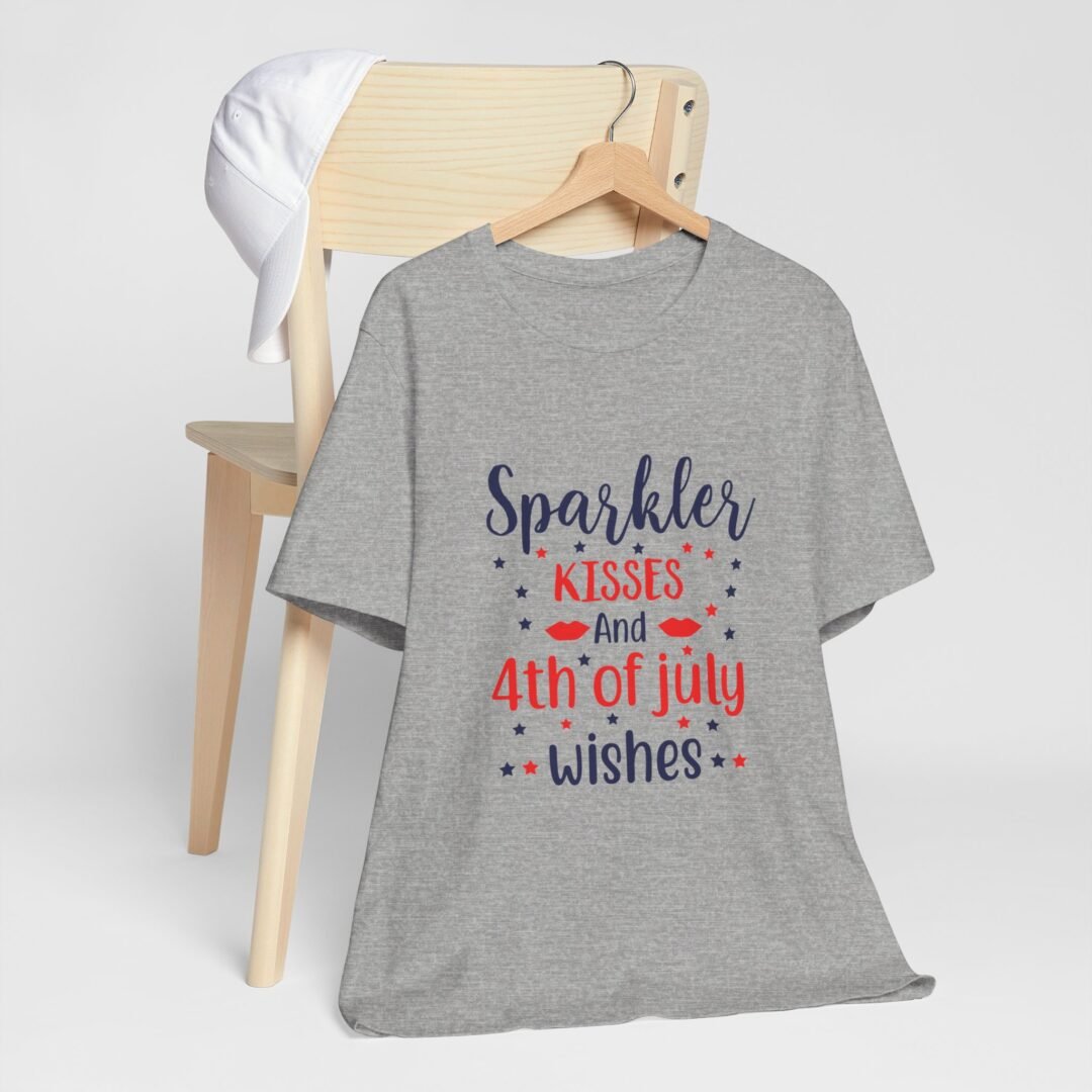 Whether you’re celebrating Independence Day or just feelin’ a little extra sparkly, our Sparkler Kisses Tee is the perfect way to show off your patriotic spirit in style! Made with soft, comfortable materials and featuring a bold, eye-catching design, this personalized apparel is sure to be a hit at any Fourth of July celebration.