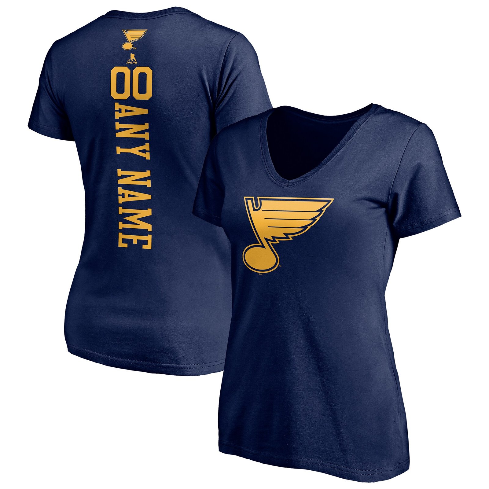 Shop at The Shopping Plaza for personalized NHL apparel like the St. Louis Blues Women’s Personalized Name & Number One Color V-Neck T-Shirt in Navy. Add your unique touch today!