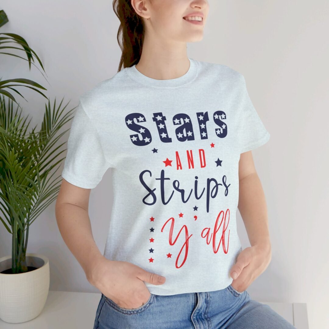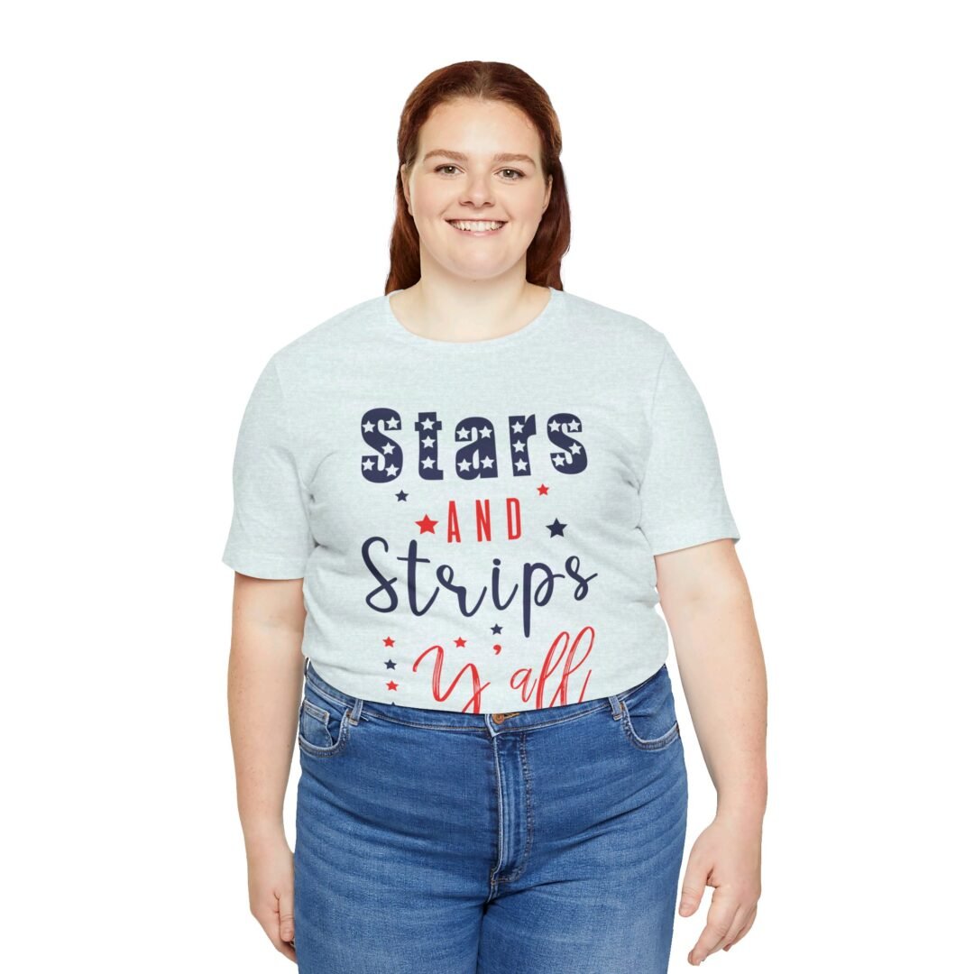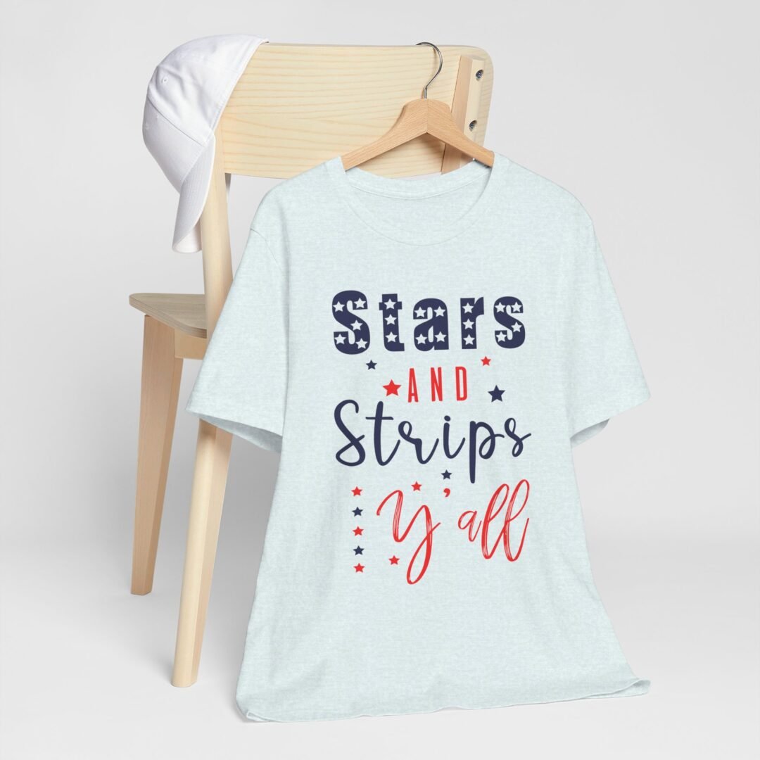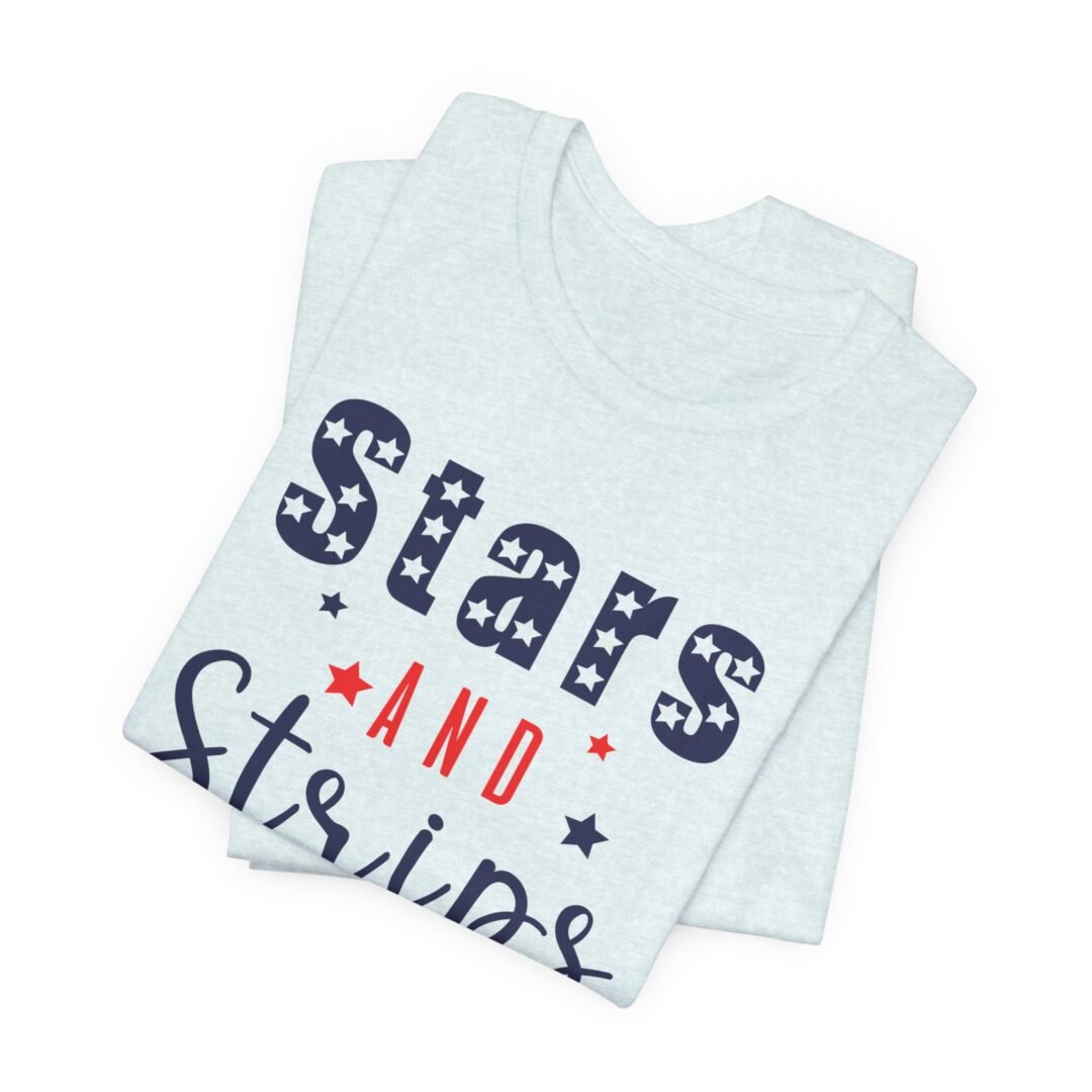 Stand out at the BBQ with our Stars & Stripes Tee! Perfect for showing off your patriotic spirit while staying cool and comfortable. Customize it for a personalized touch on your Fourth of July celebration outfit.