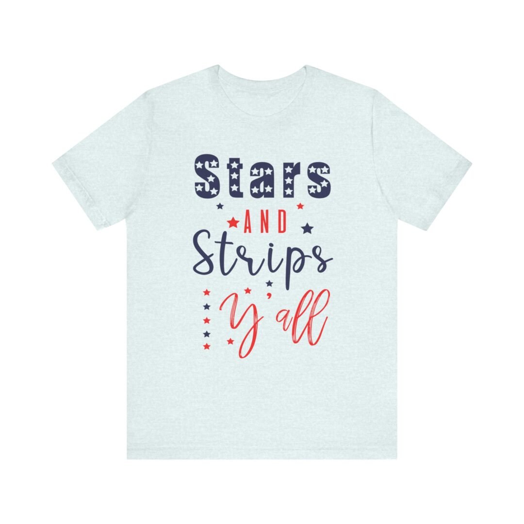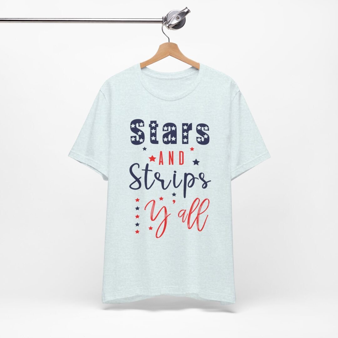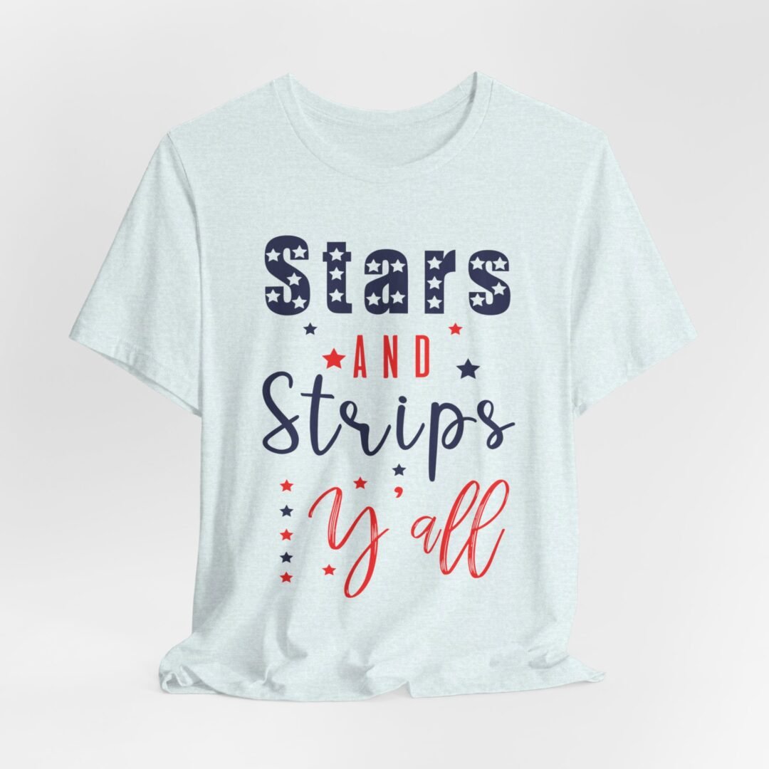 Stand out at the BBQ with our Stars & Stripes Tee! Perfect for showing off your patriotic spirit while staying cool and comfortable. Customize it for a personalized touch on your Fourth of July celebration outfit.