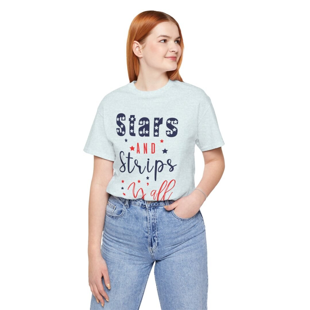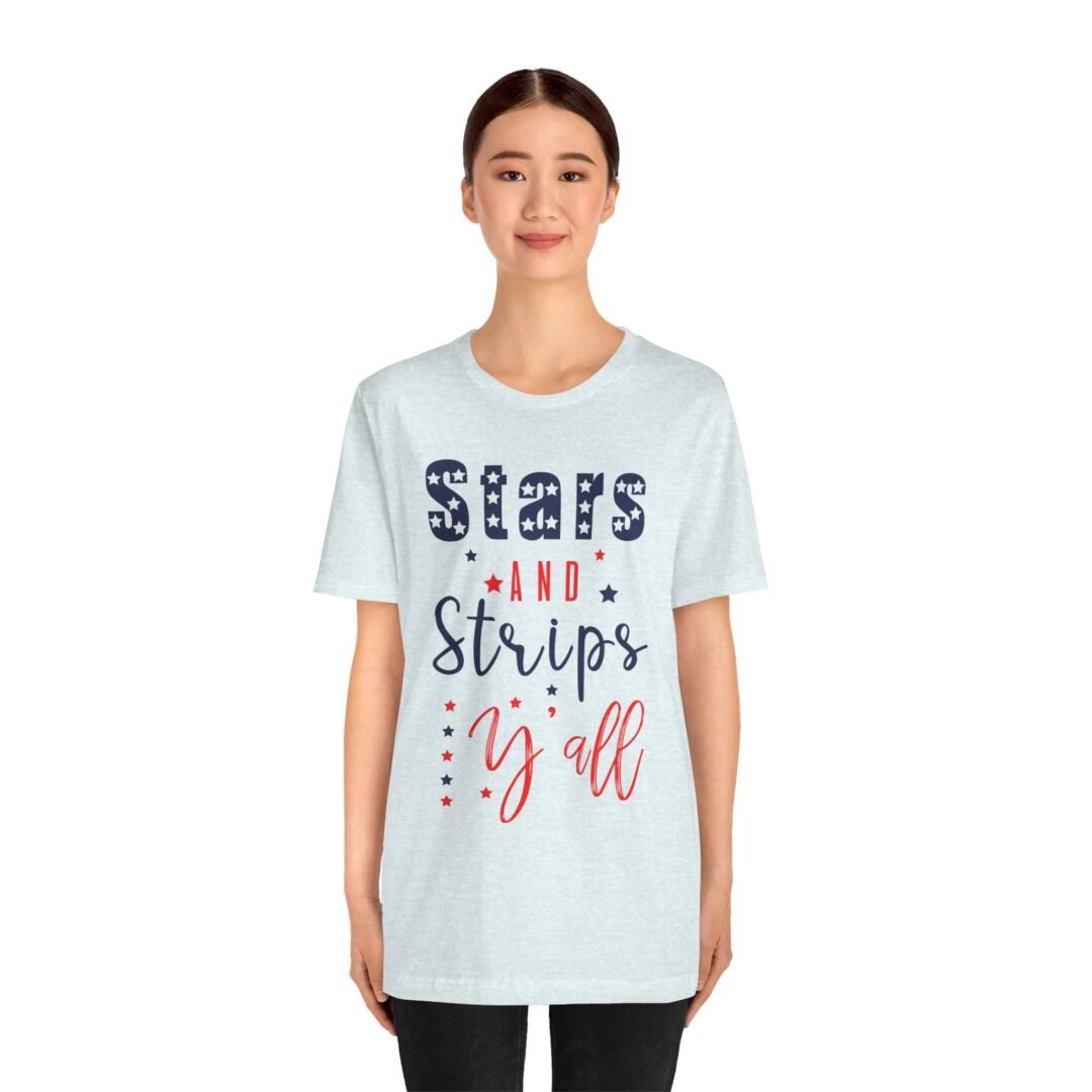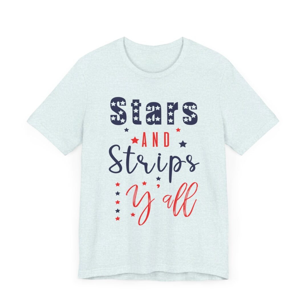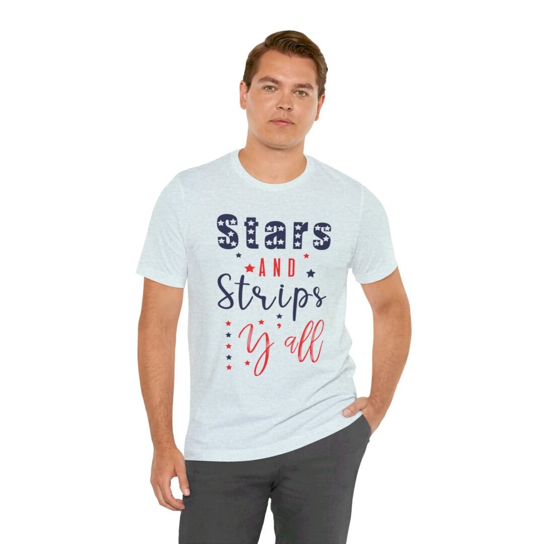 Stand out at the BBQ with our Stars & Stripes Tee! Perfect for showing off your patriotic spirit while staying cool and comfortable. Customize it for a personalized touch on your Fourth of July celebration outfit.