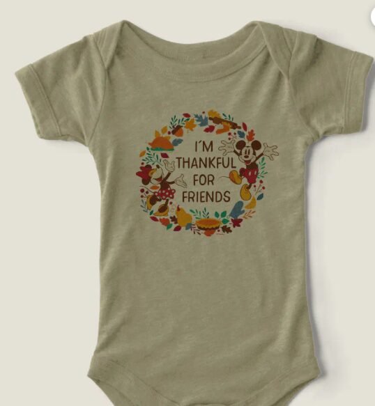 Celebrate Thanksgiving with adorable personalized infant apparel featuring Mickey and Minnie! Shop now at The Shopping Plaza for joyful holiday outfits.