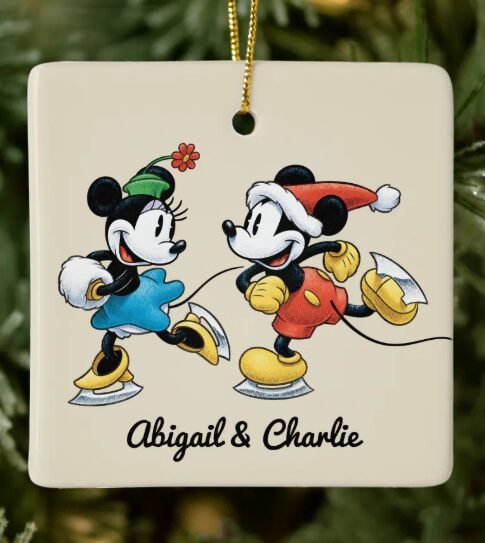 - Features beloved Mickey Mouse and Minnie Mouse in festive ice skating attire.