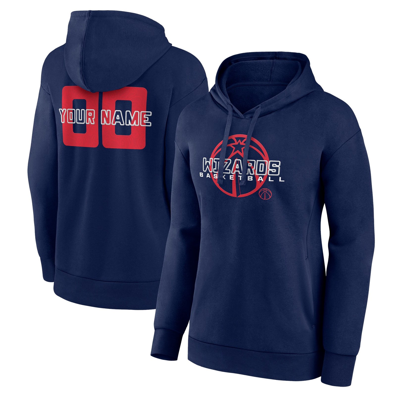 Whether you’re cheering courtside or from the comfort of your couch, stand out in style with this Washington Wizards Women’s Stellar Personalized Name & Number Pullover Hoodie in Navy. This personalized NBA apparel is sure to make a statement as you rep your favorite team with a customized touch.